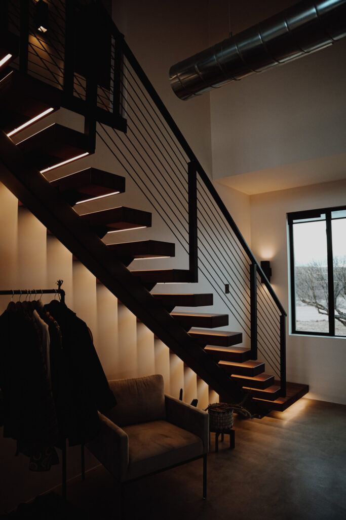 If you’re looking for ways to go bigger and bolder than even a basic floating staircase, LED treads are the perfect way to express an undeniably modern aesthetic. This particular system stands out with its beautiful construction, and the addition of a sleek, horizontal railing maximizes the clean, modern industrial look the homeowners were after.