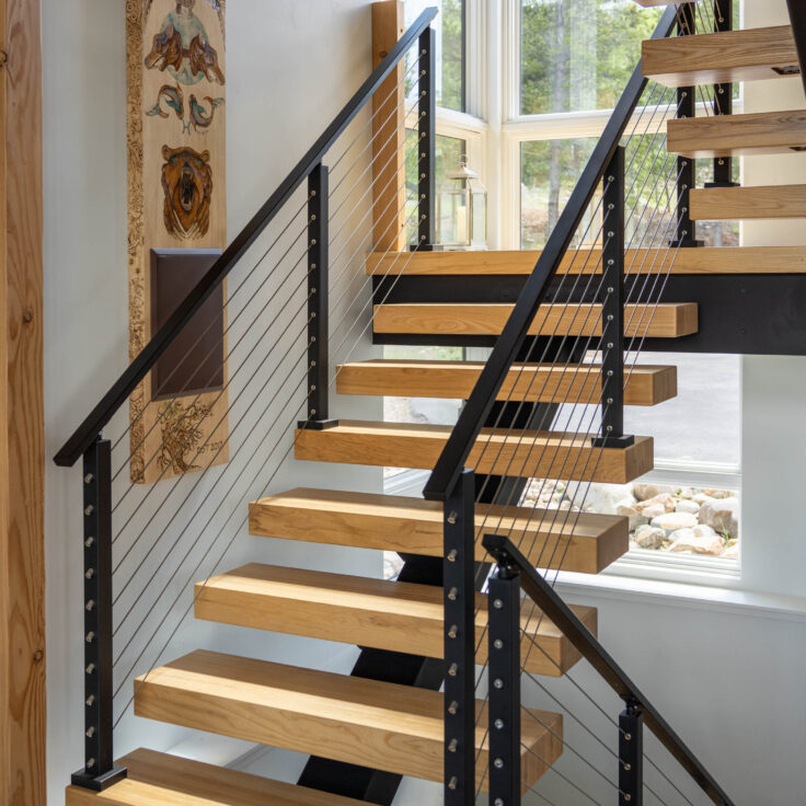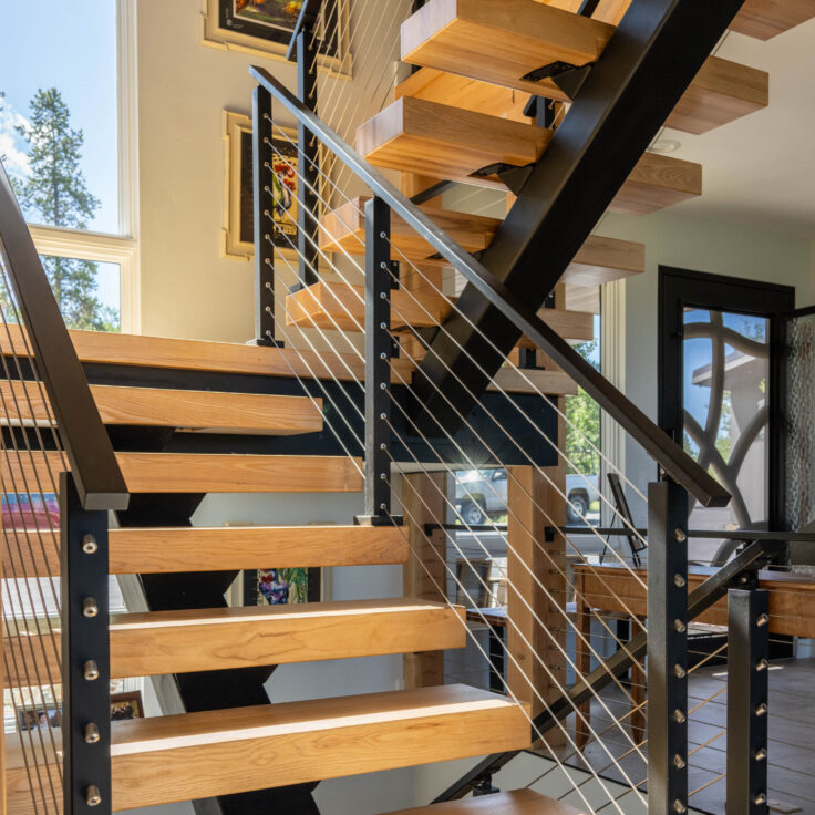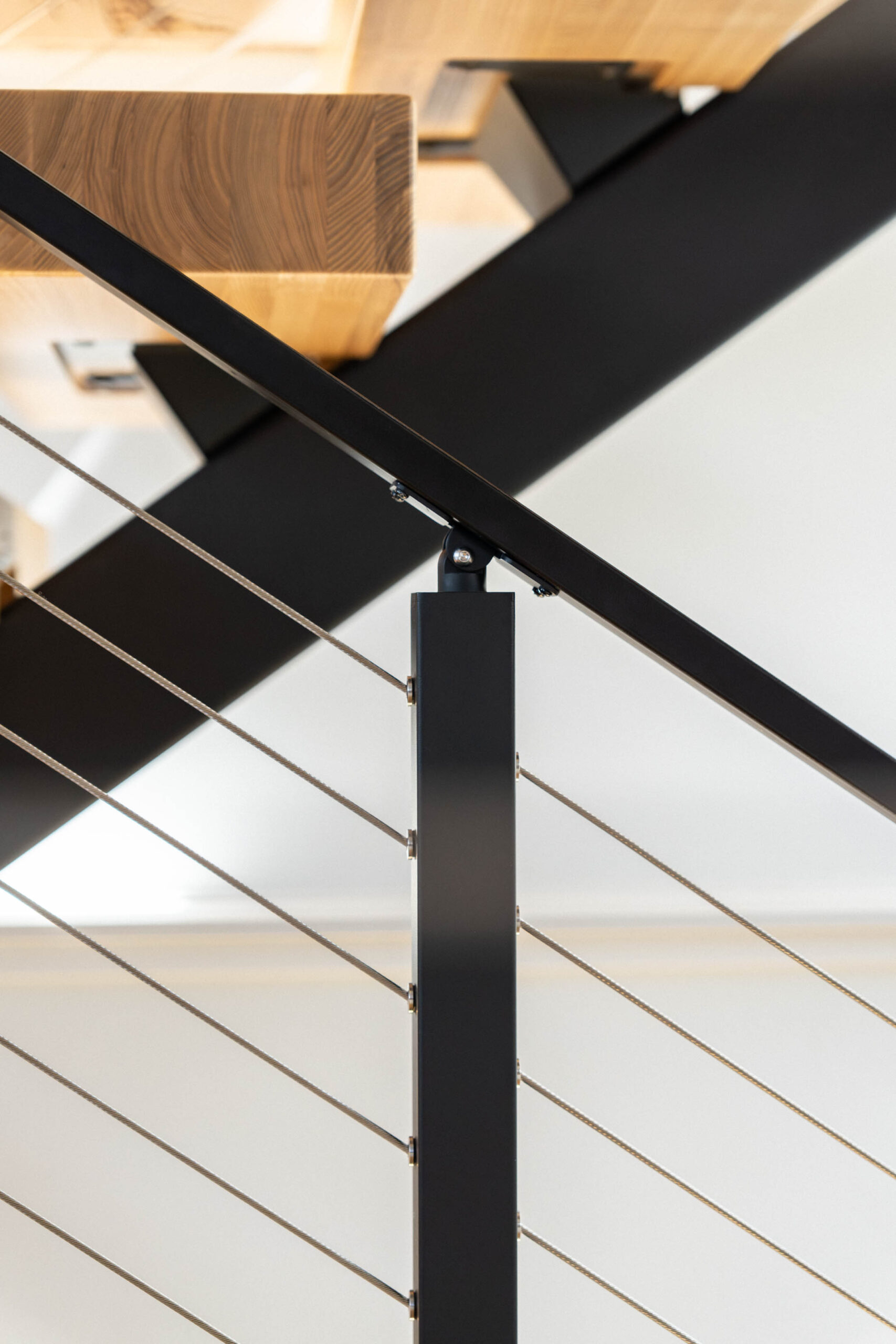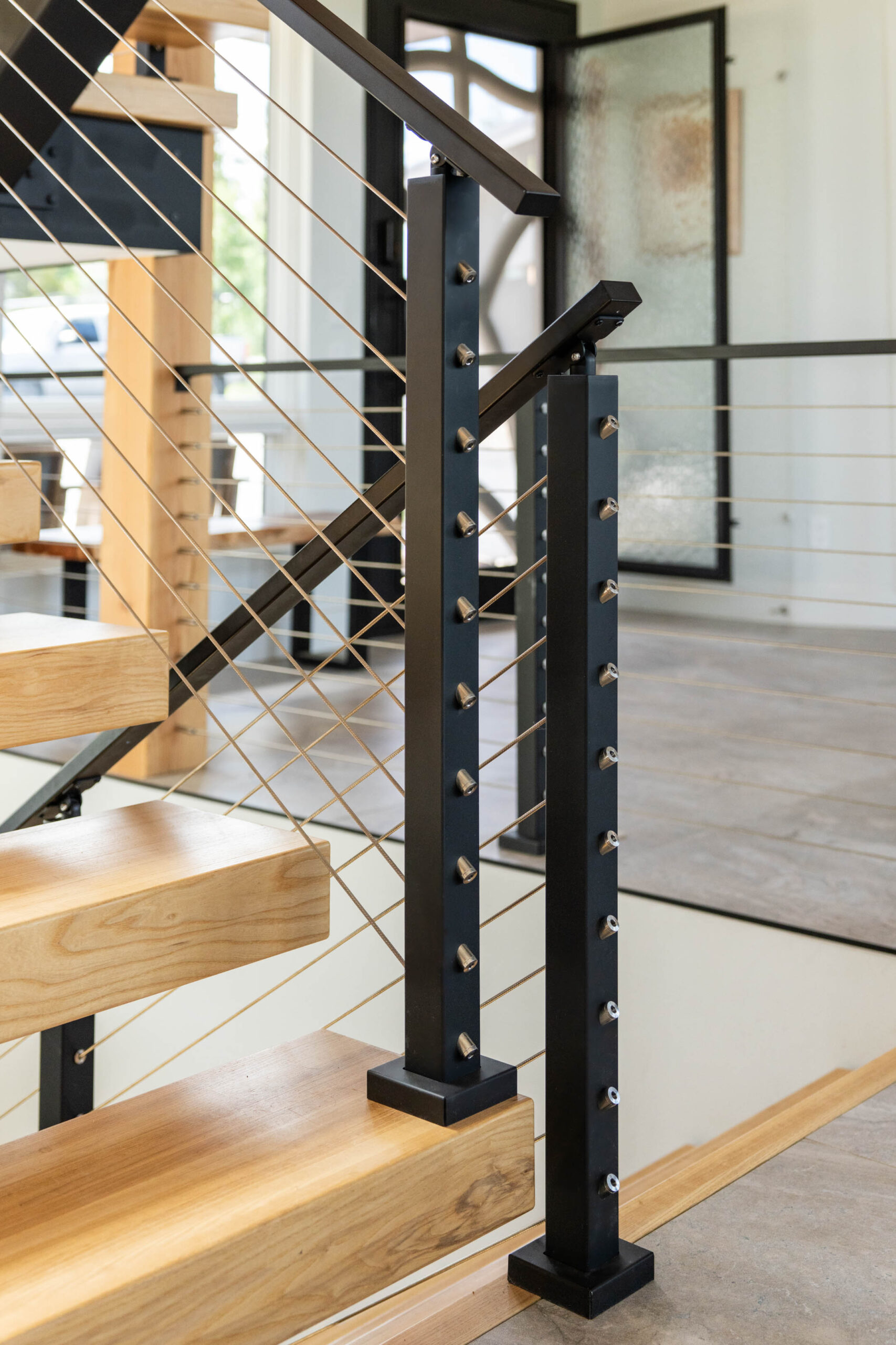 Products: Cable Railing, FLIGHT Floating Stairs, FLIGHT Mono, 6008 Square Wood Cap Rail, Base Rail Mounting Kit