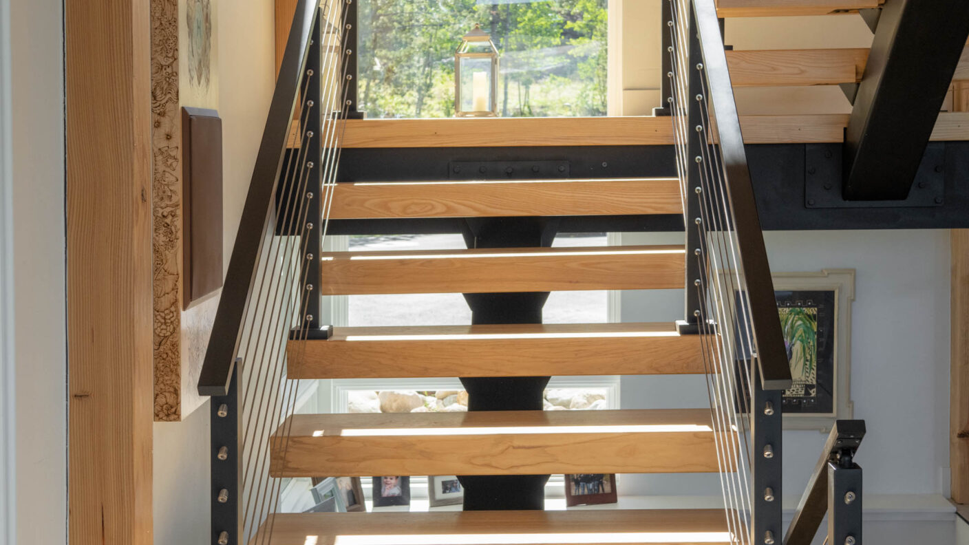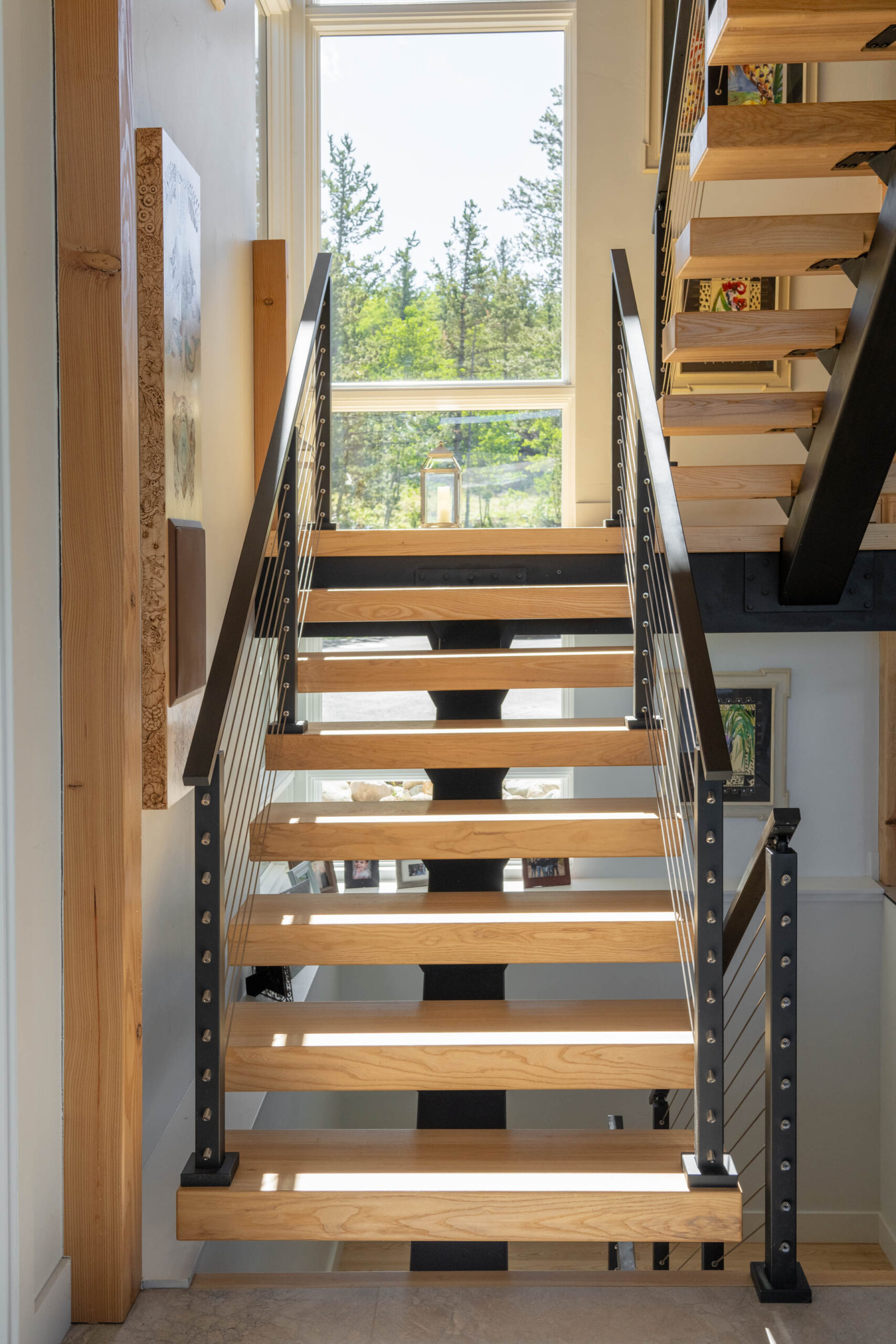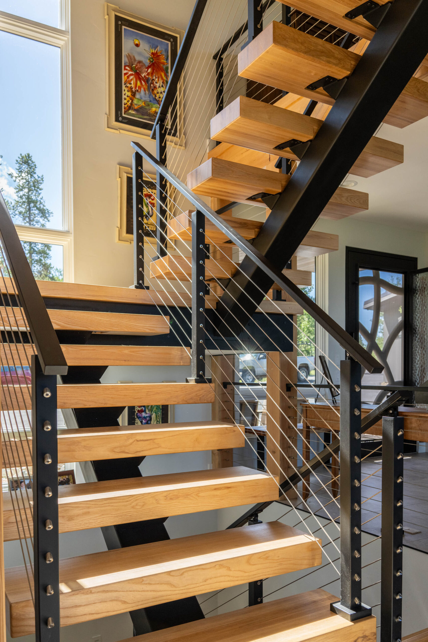 Products: Cable Railing, FLIGHT Floating Stairs, FLIGHT Mono, 6008 Square Wood Cap Rail, Base Rail Mounting Kit