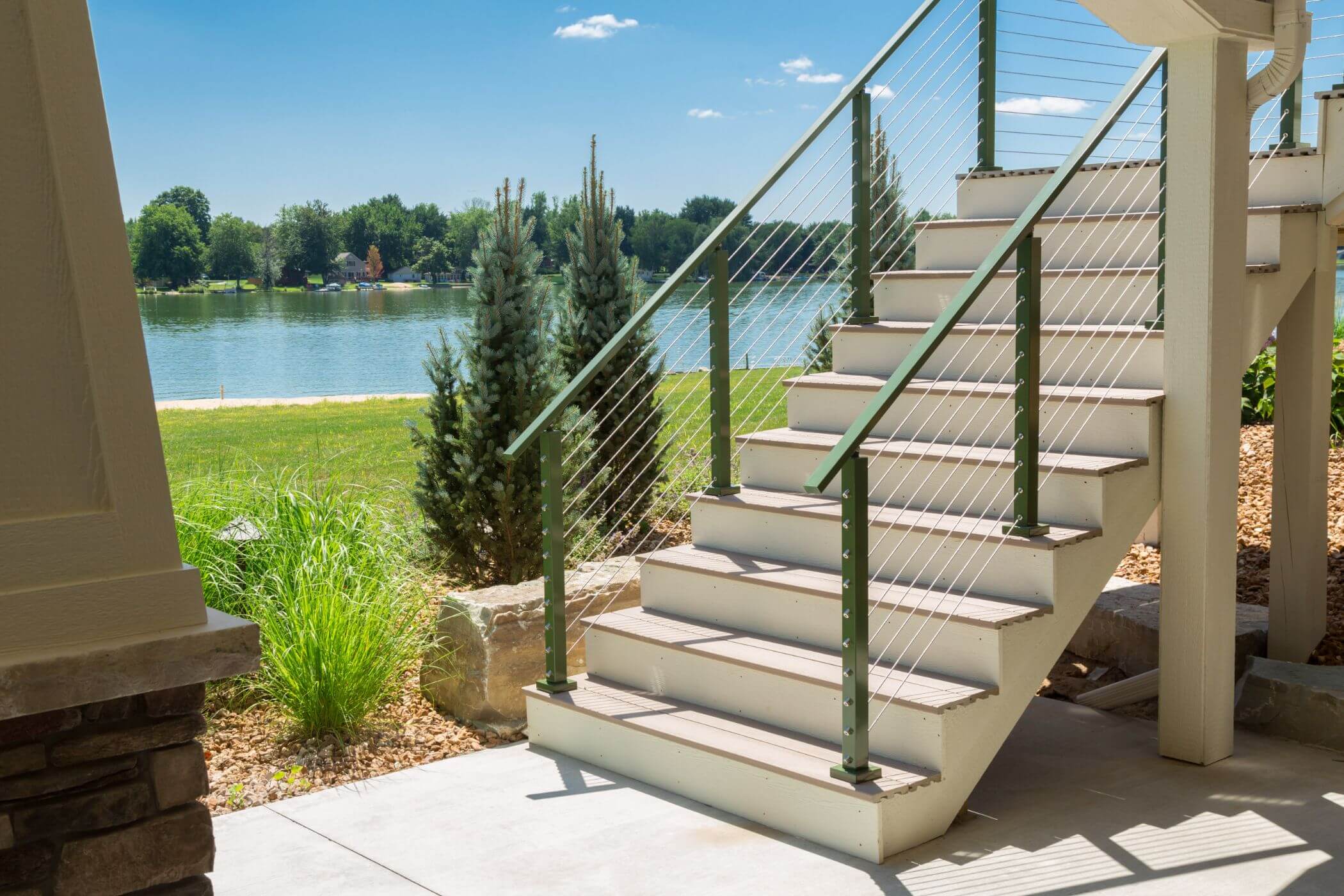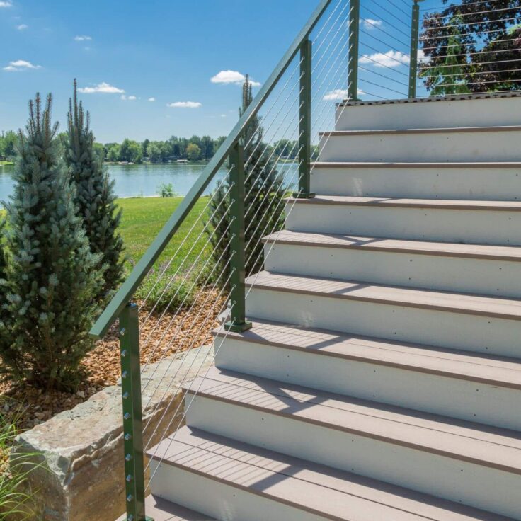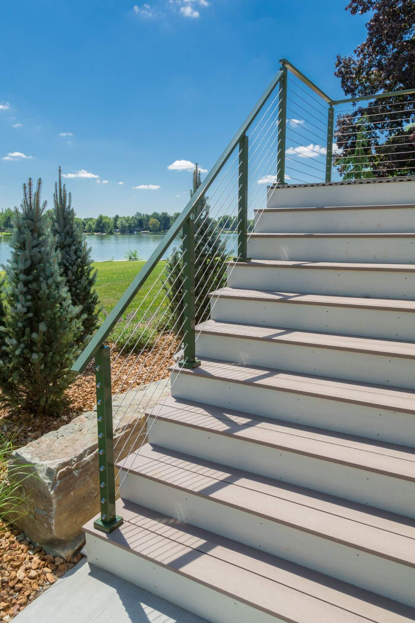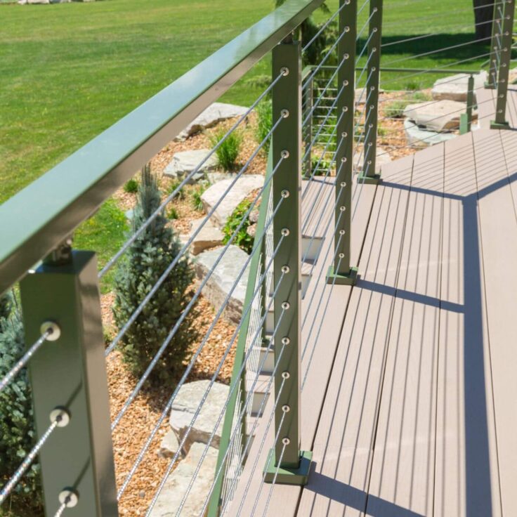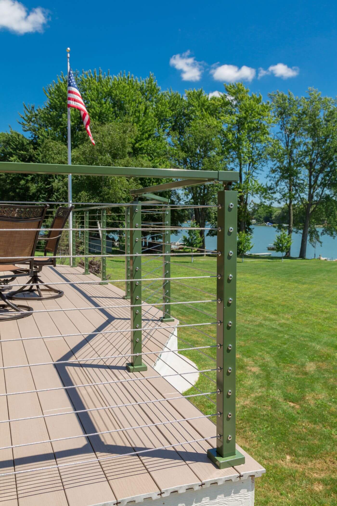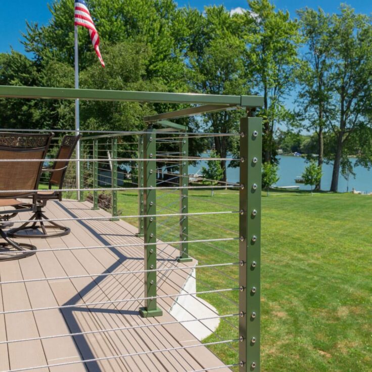 This customer used our green powder coat to beautifully accent his red home. We’re proud of the fact that our cable railing system is adaptable. We offer many different cable railing post styles that vary from their base plates to their tops. Furthermore, we have a vast array of powder coat options so you can find the perfect color for your system. Selecting a unique powder coat puts your creativity on display and gives you a system that stands out from the crowd.