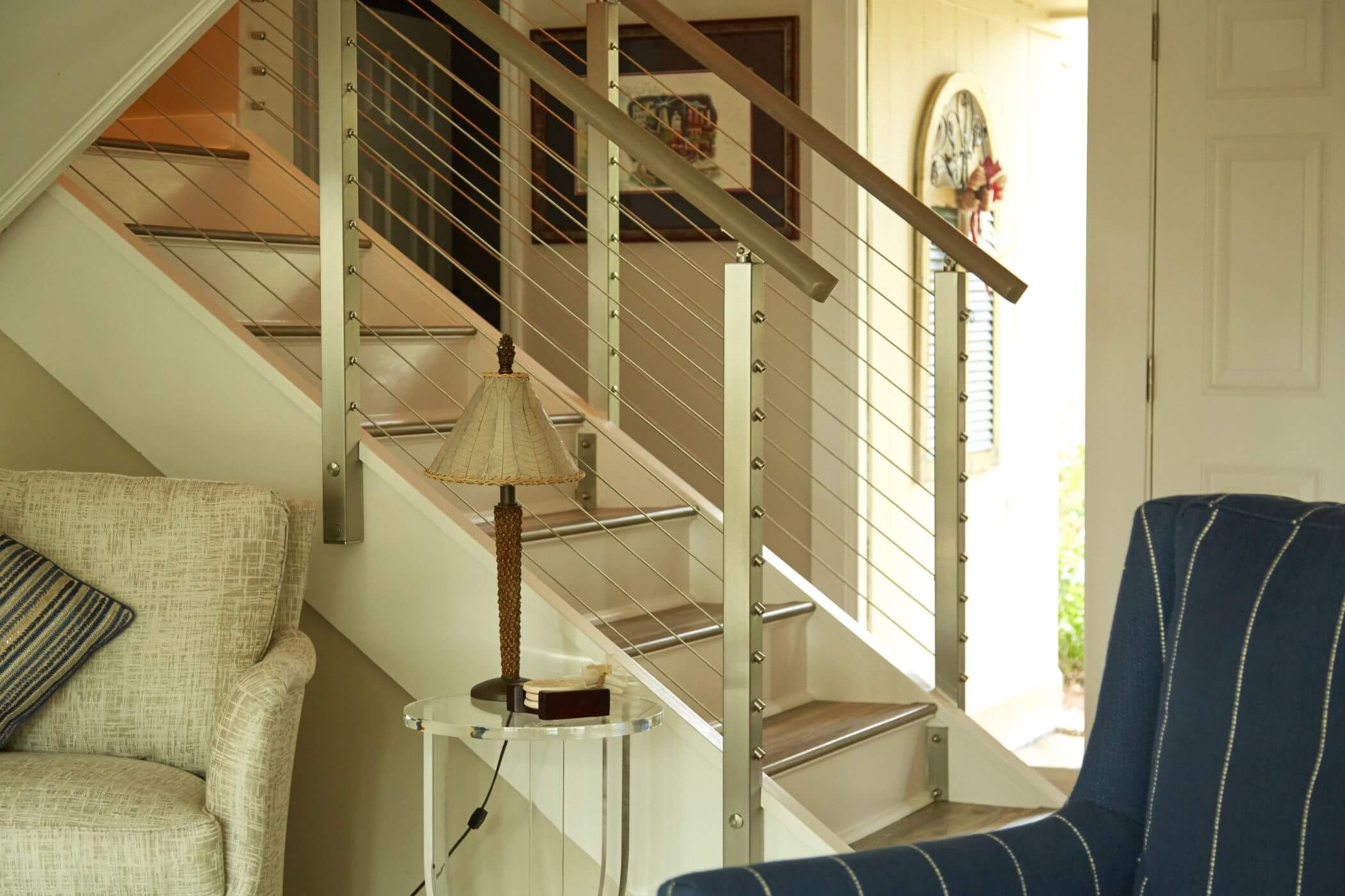 A gorgeous beach home in Fernandina, Florida gets an indoor cable railing makeover.
