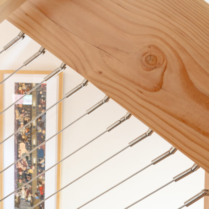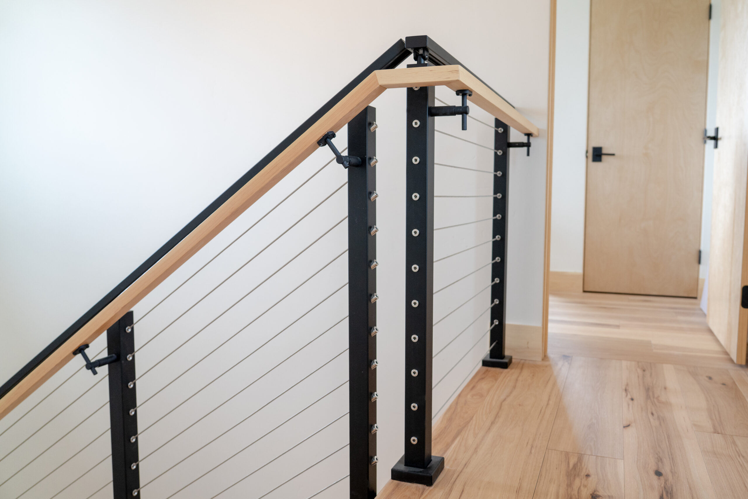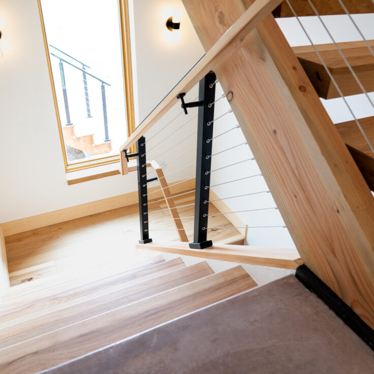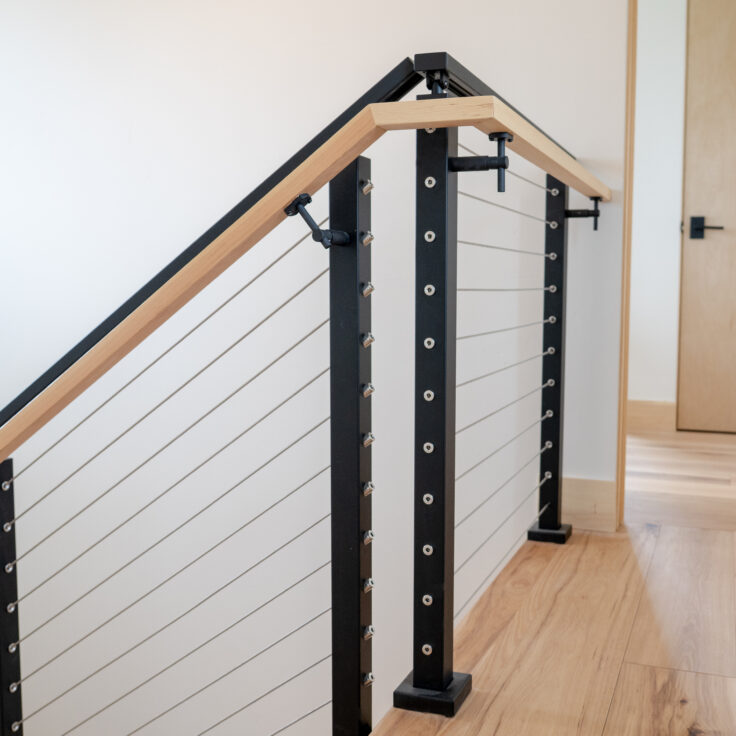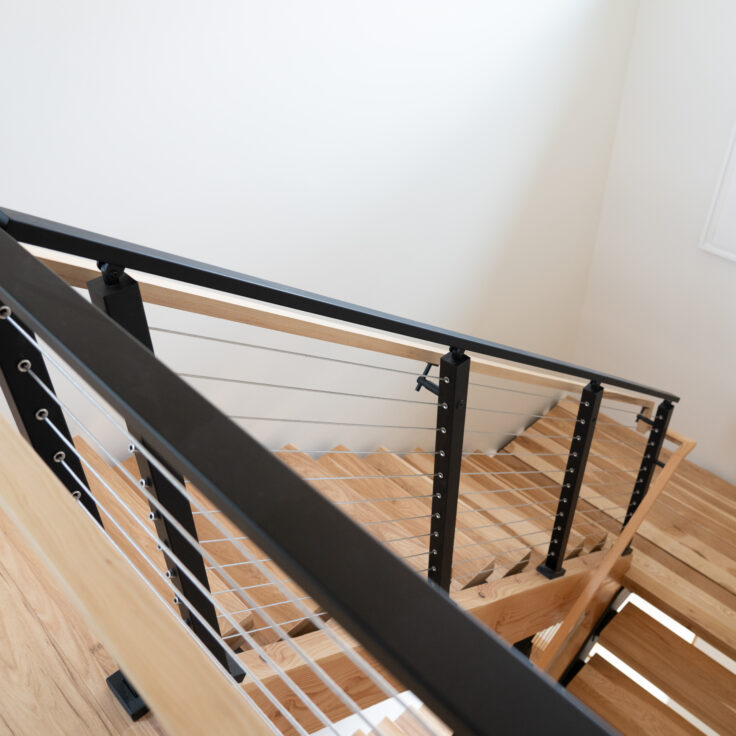 This customer opted to build their own custom staircase, then work with us for a custom railing with custom, miter-cut handrail to match. The result is a bright and natural transitional space in the home.