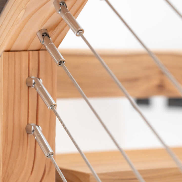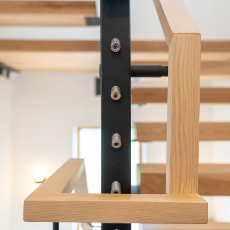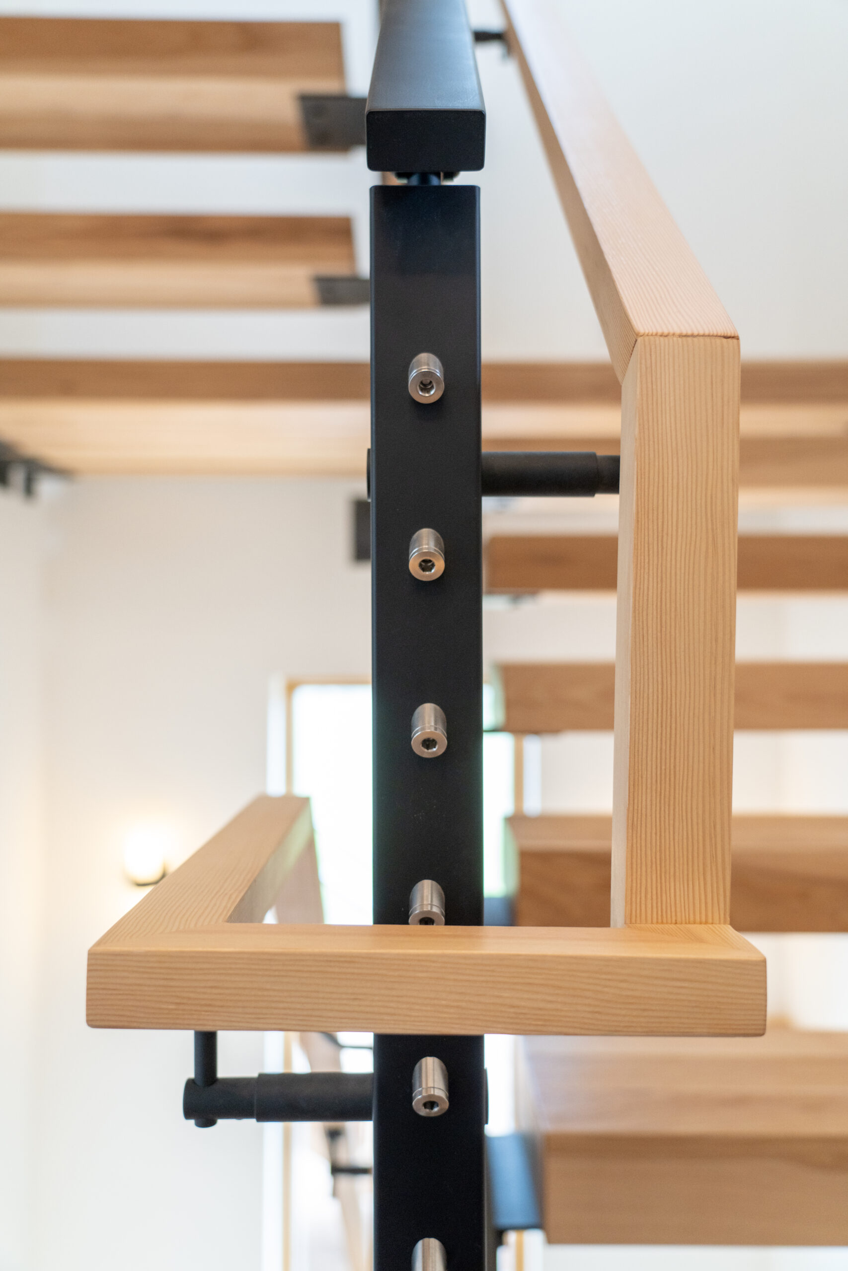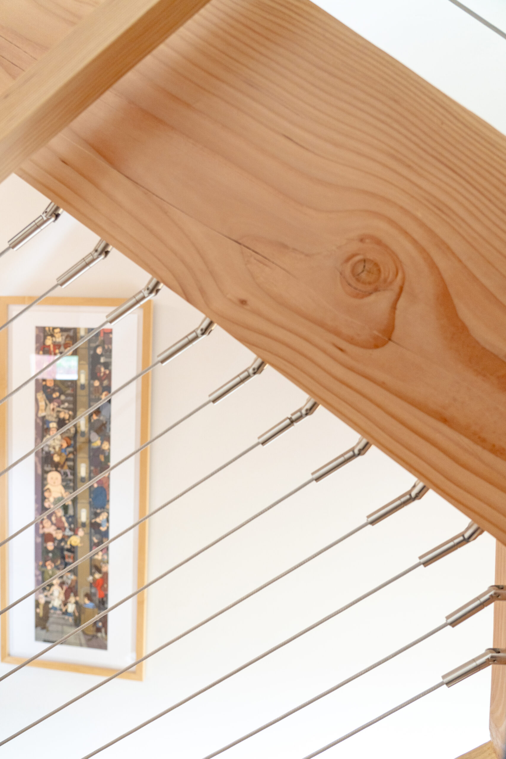 This customer opted to build their own custom staircase, then work with us for a custom railing with custom, miter-cut handrail to match. The result is a bright and natural transitional space in the home.
