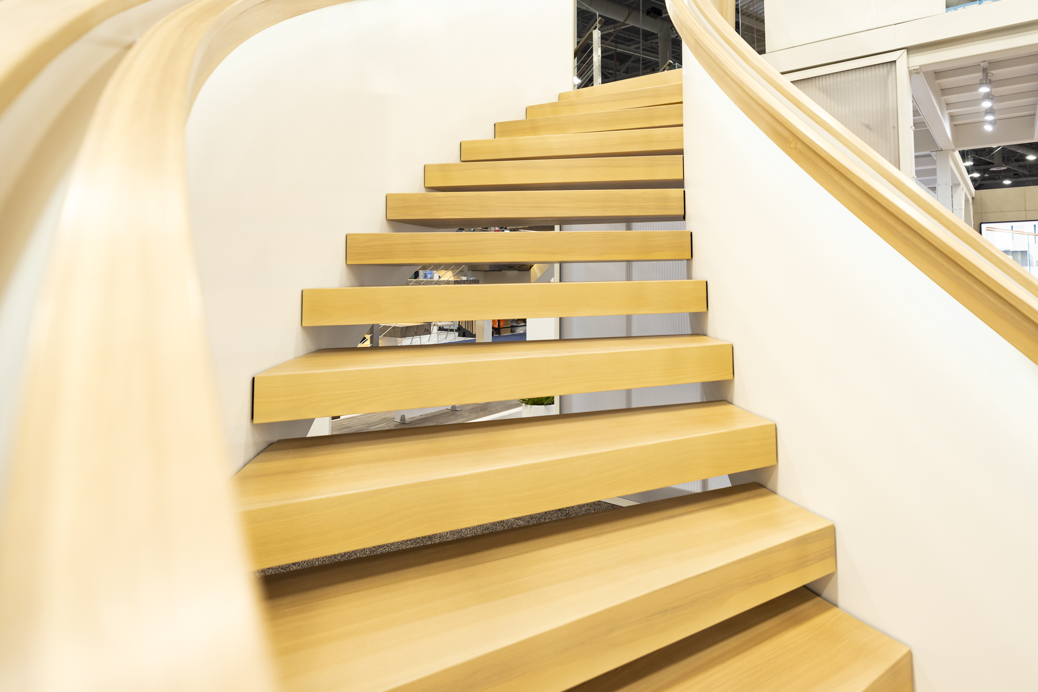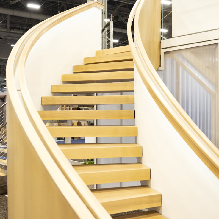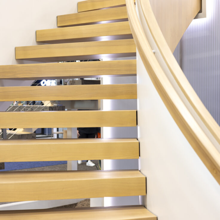 Designed to capture anyone’s attention, this FLIGHT Curve system was the star of the show at the 2024 International Builders Show. Featuring LED Ash wood treads, matching LED handrail, and side paneling, this system is sure to engineered to inspire.