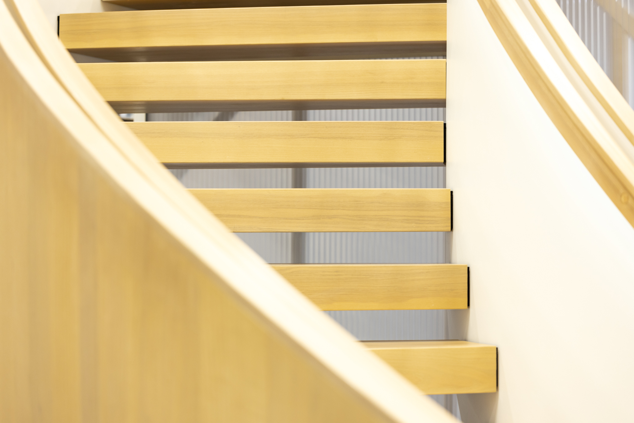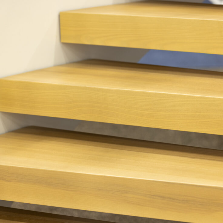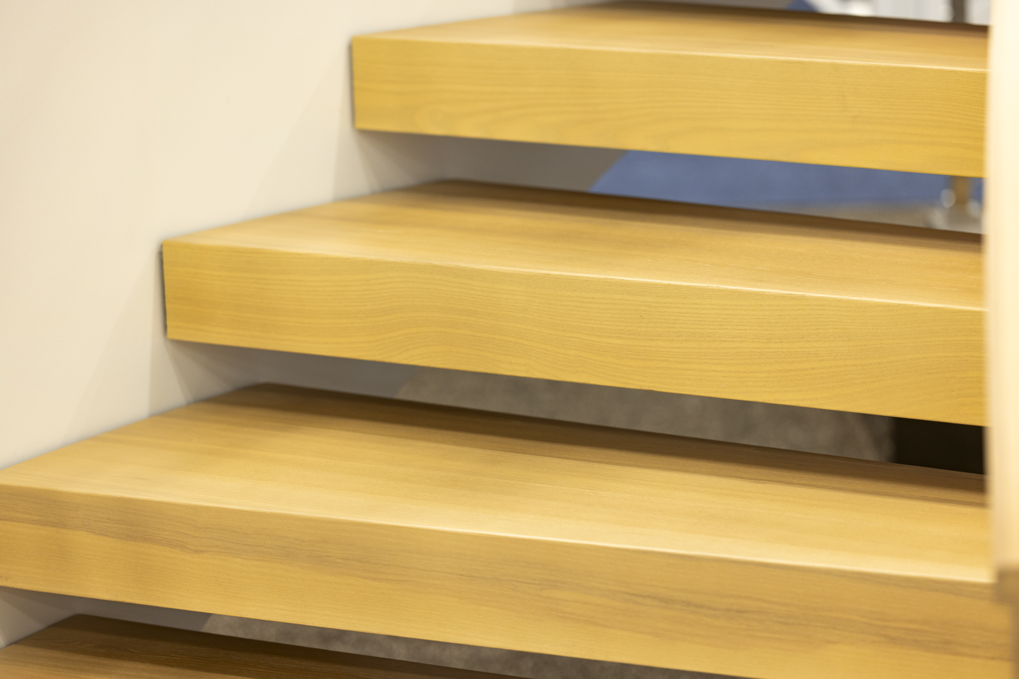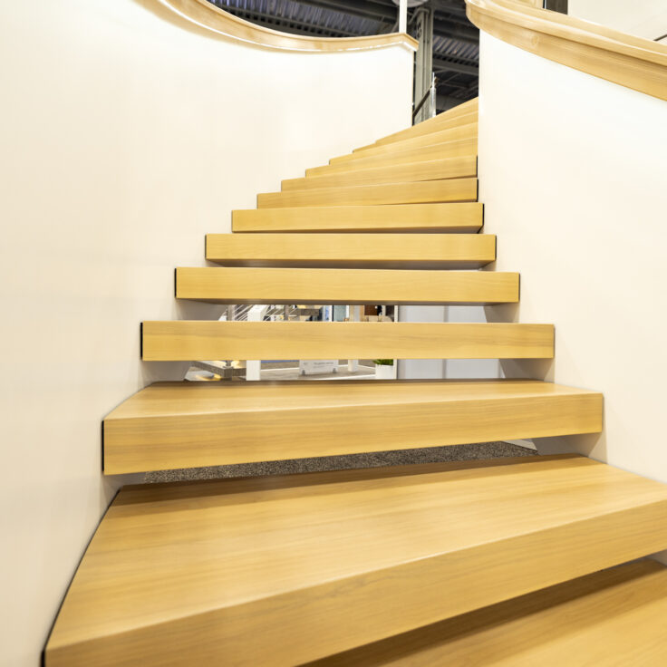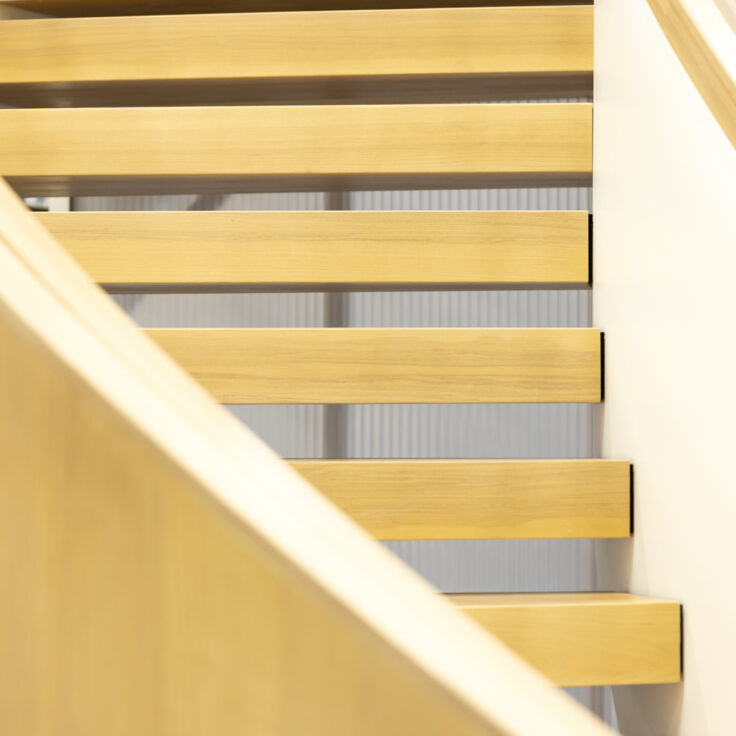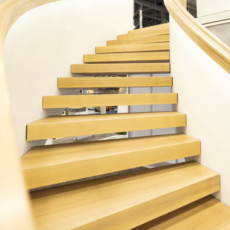 Products: FLIGHT Floating Stairs, 3″ Thick Stair Treads, 6200 Handrail
