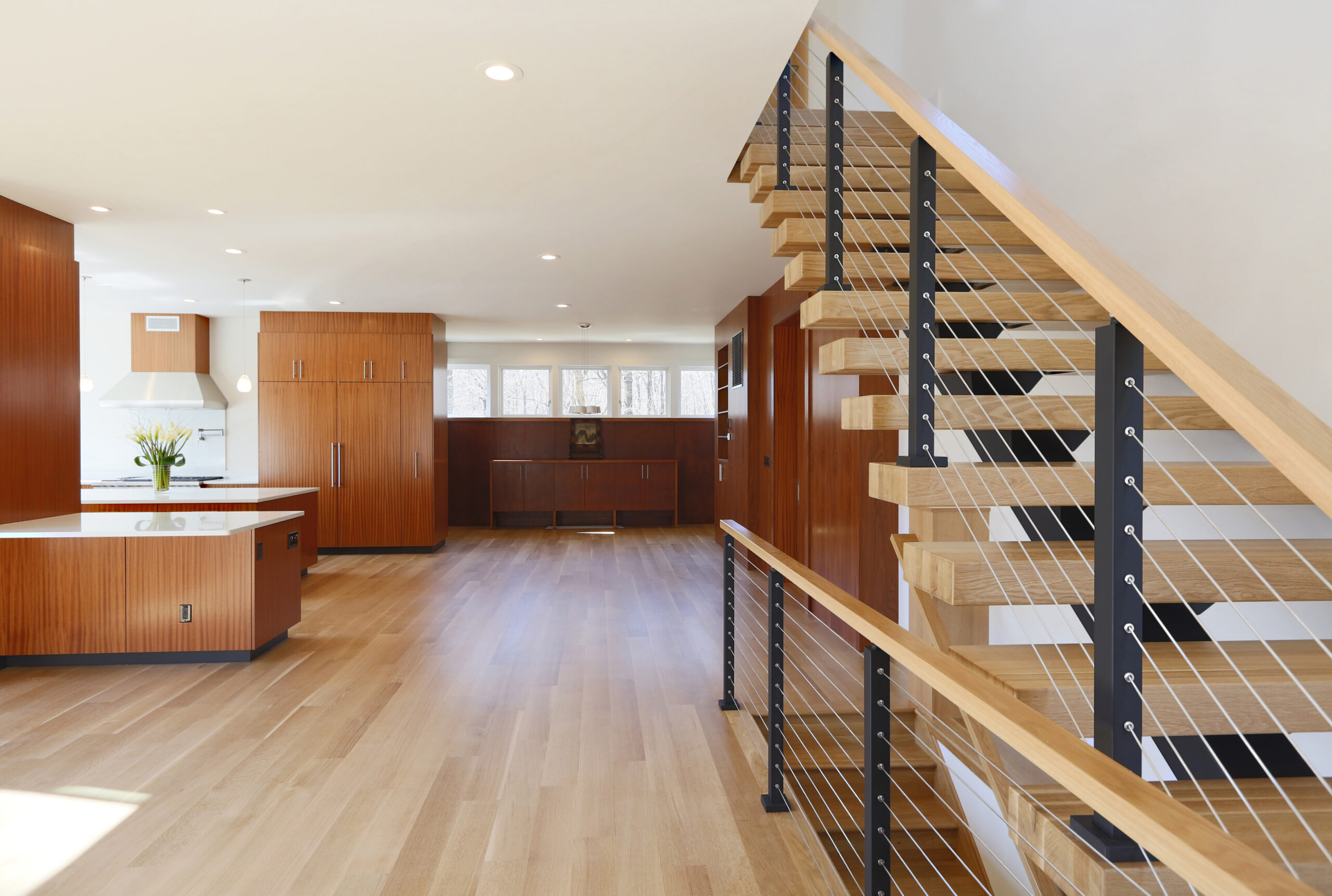 When Princeton Design Guild purchased a 1960s Usonian-style home, Managing Partner Kevin Wilkes, AIA, had high expectations for a major remodeling project. “We build our own paneling and cabinets from Sapele because of the unique grain characteristics. We expected to build the stairway ourselves, but then I found Viewrail FLIGHT floating stairs,” he said.