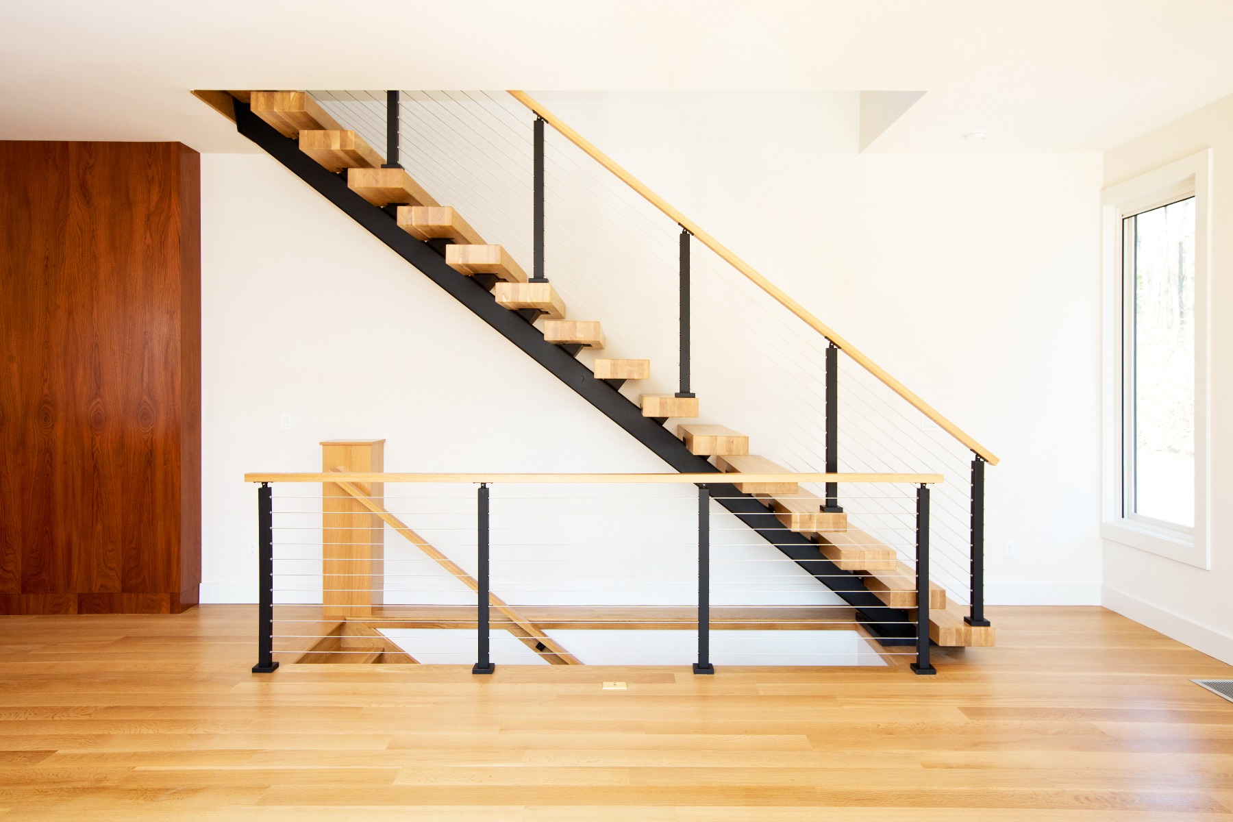 Products: Cable Railing, FLIGHT Floating Stairs, FLIGHT Mono, Signature Cable Railing, 3″ Thick Stair Treads