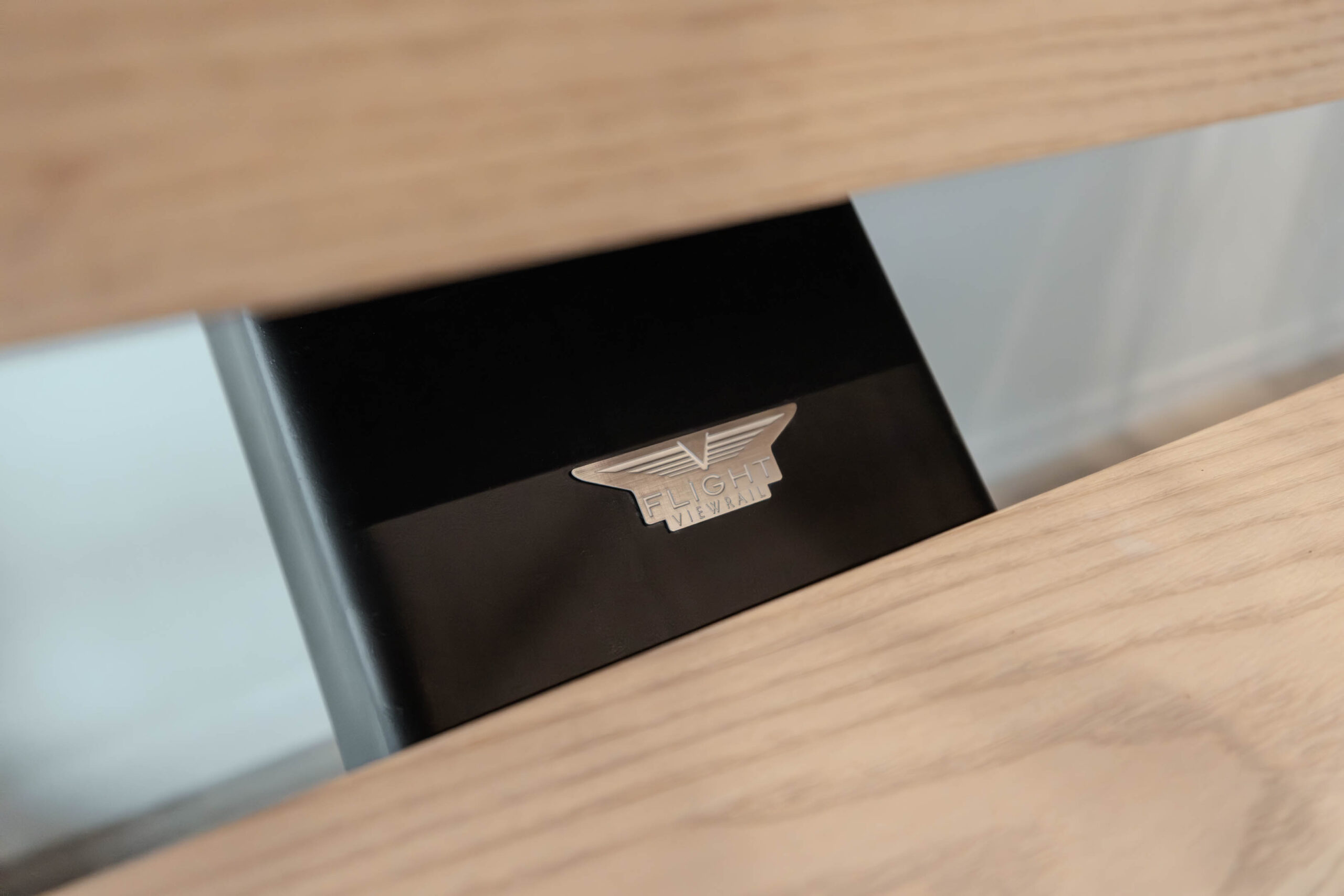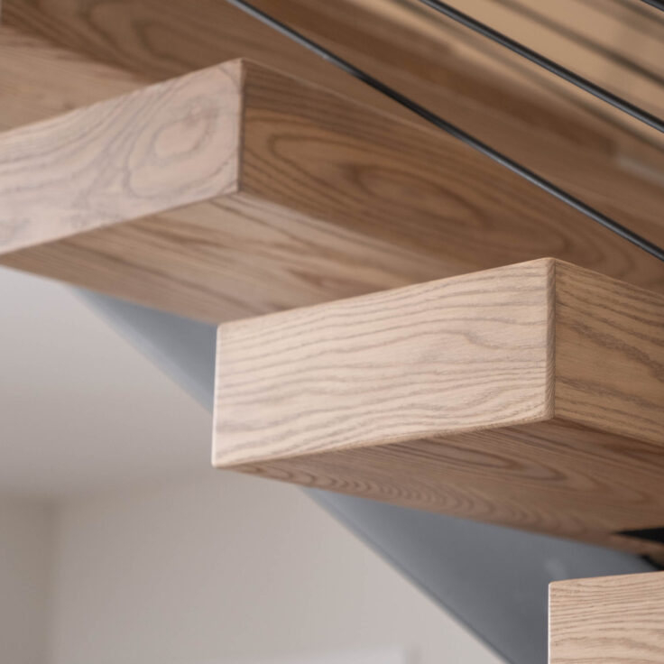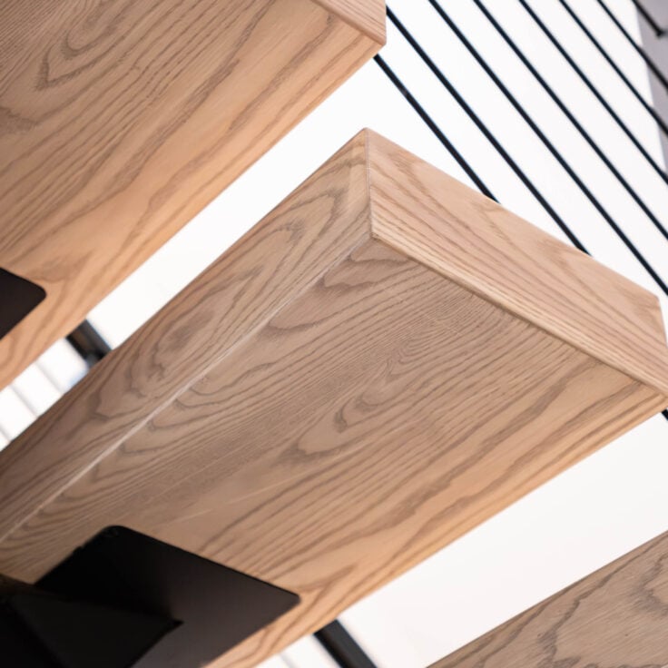 This FLIGHT Mono system achieves the ultimate contemporary look with the addition of a slim, Onyx rod infill and matching handrail. To create a space worth remembering, this stunning centerpiece combines classic and modern elements. With light, natural treads, this system complements the space beautifully.