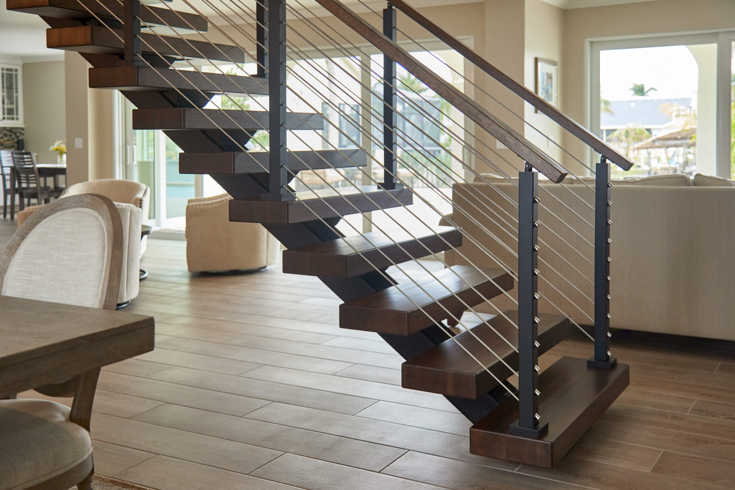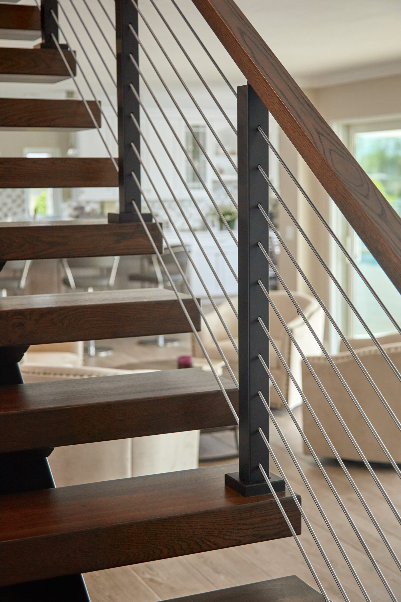 They knew that a floating staircase would open up the room, but they were concerned about the details. Would the system be safe for family members and small ones to traverse? Would we be able to work within the constraints of her space?