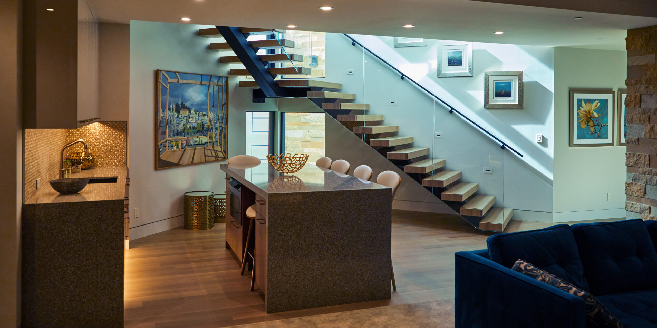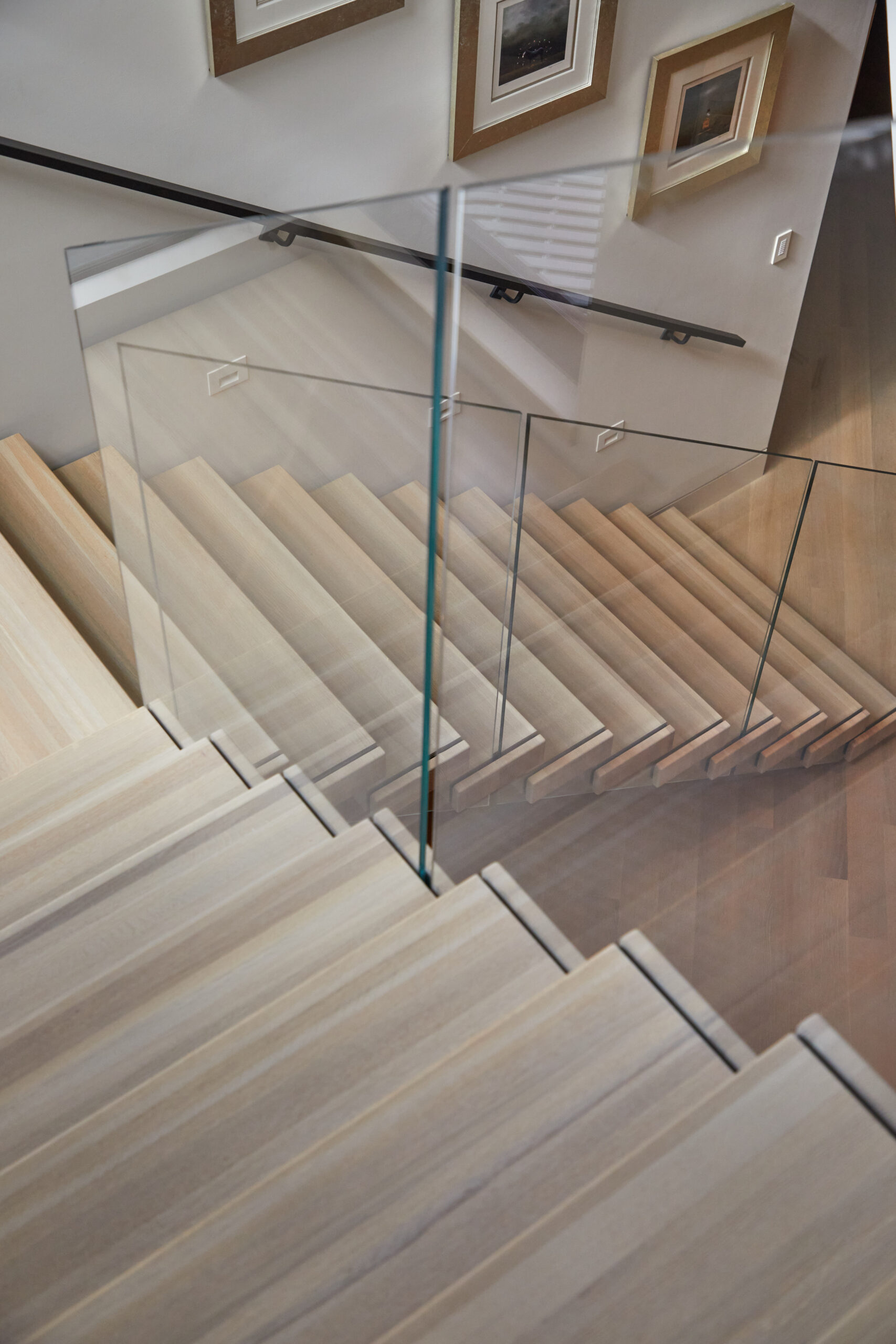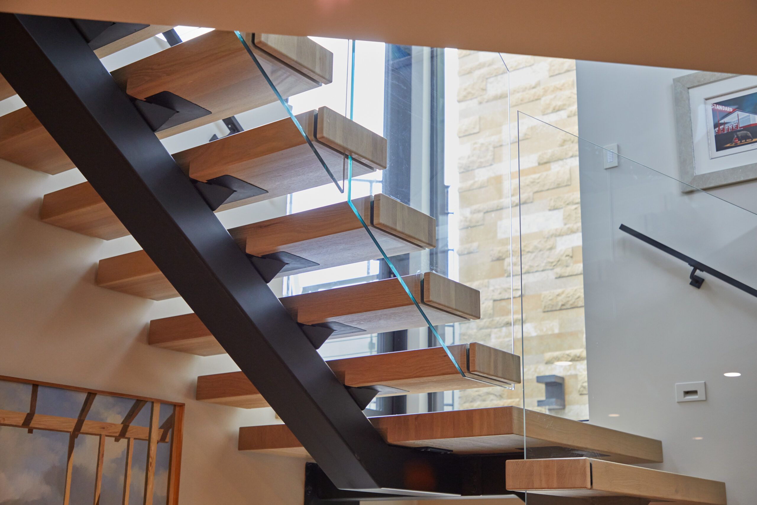 With a unique shape and small space for a staircase, this modern home needed a custom built system to perfectly match the area.