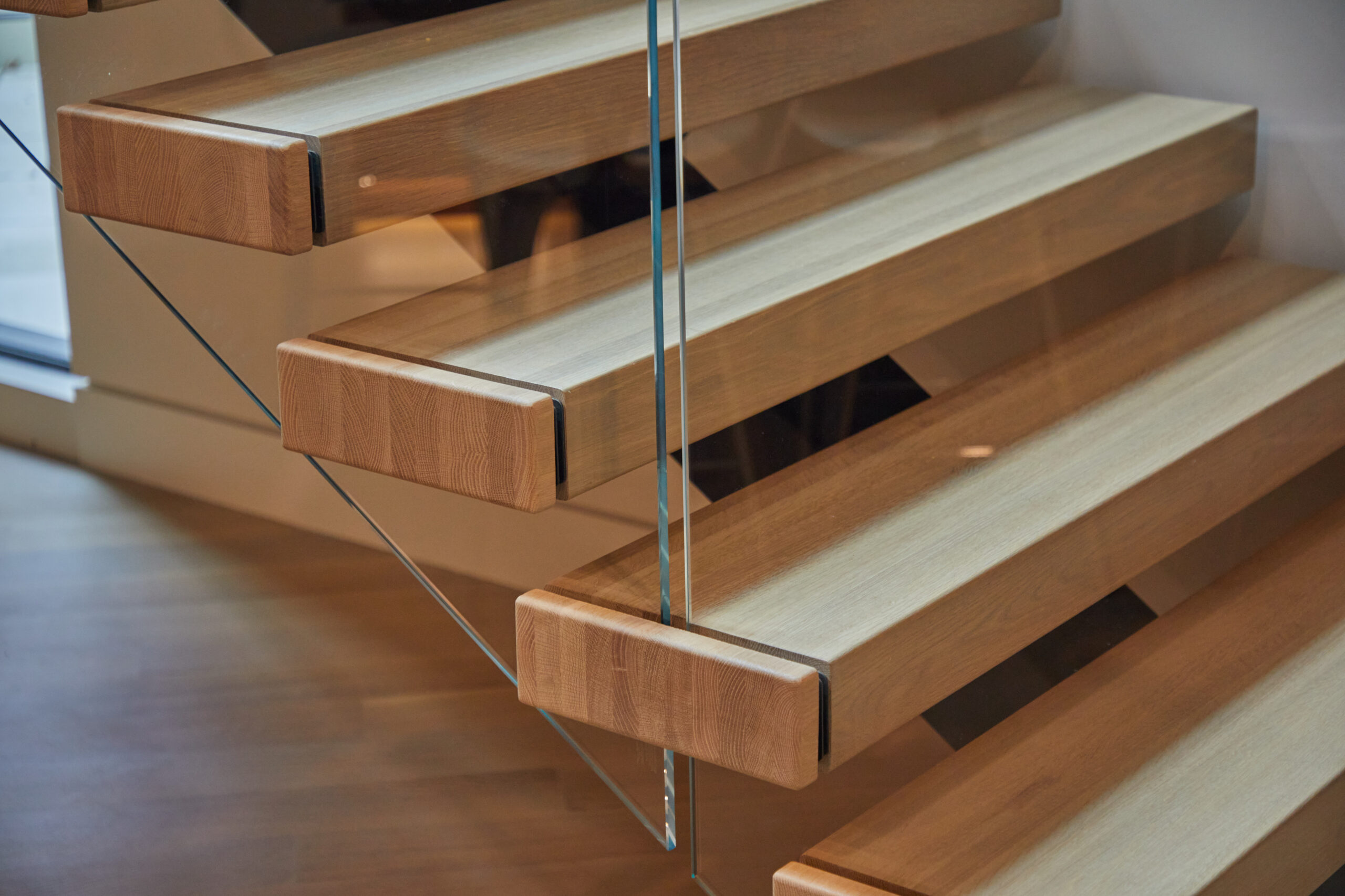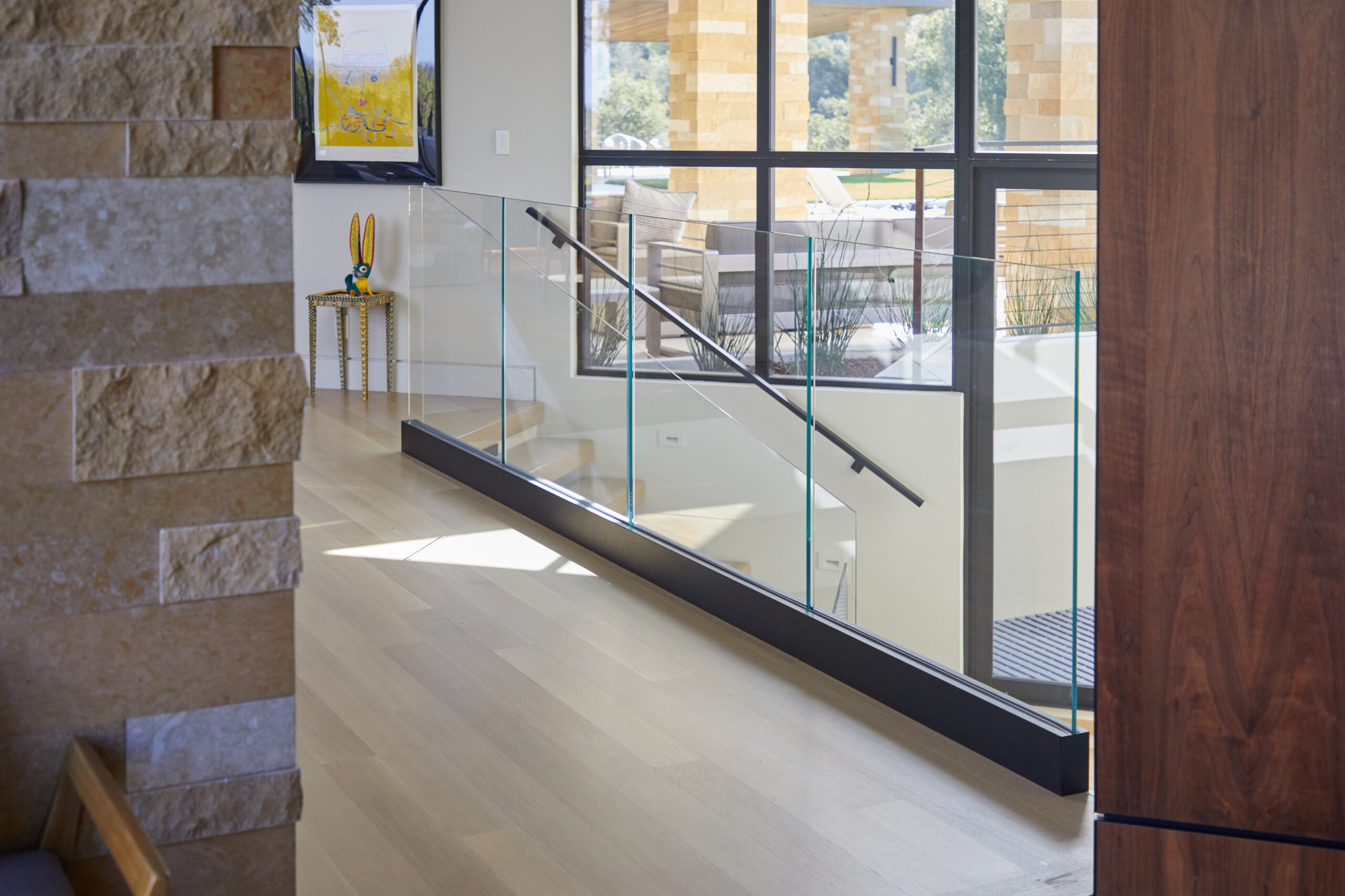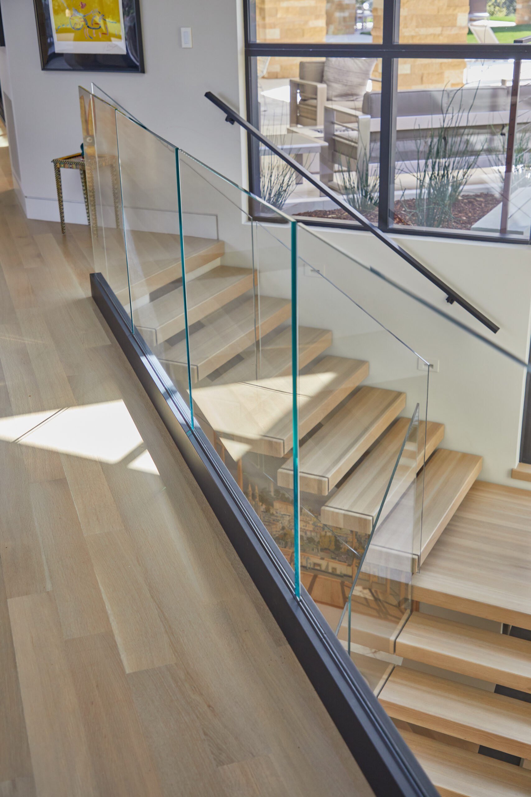 Products: Base Rail, FLIGHT Floating Stairs, FLIGHT Mono, Glass Railing, Base Rail Mounting Kit, 3 1/2″ Thick Stair Treads