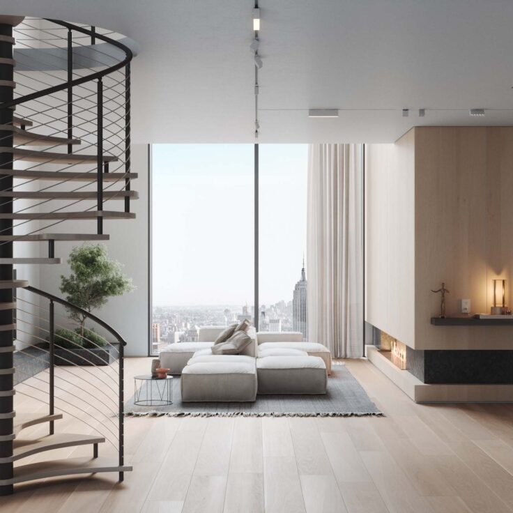 Spiral stairs used to be the pinnacle of traditional design – now, they’ve taken on a modern twist. This gorgeous staircase makes the most of the modern space it’s in, while taking up the least amount of space in its urban environment, where extra room is always a commodity.