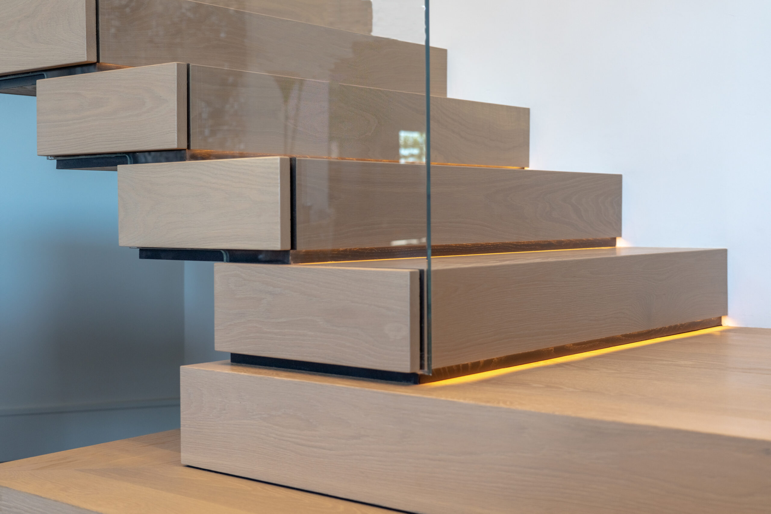 Products: FLIGHT Floating Stairs, FLIGHT Stack, Glass Railing, Vedera
