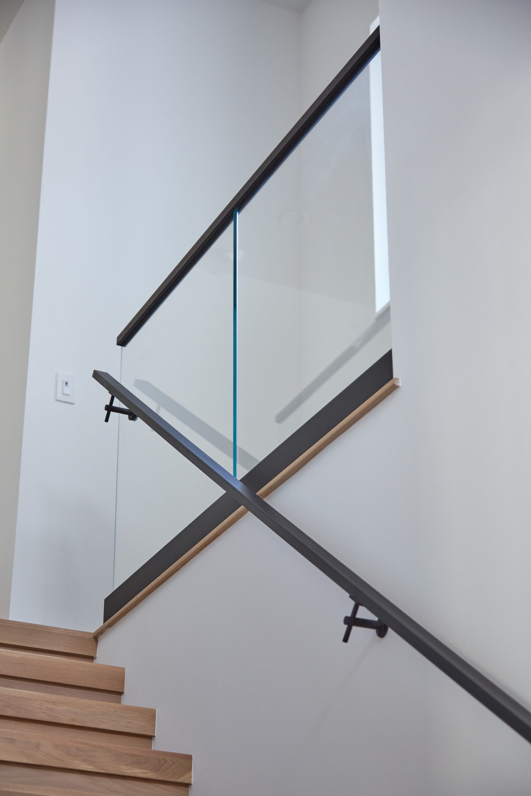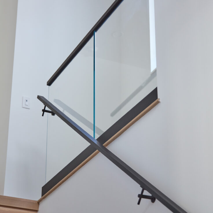 This indoor glass railing system brings an open concept to a narrow space.