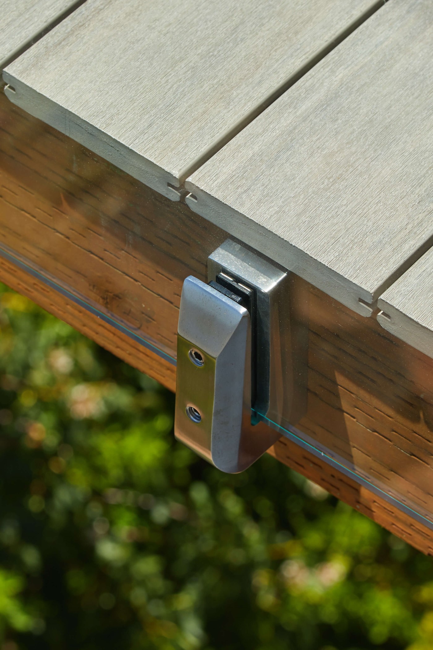 When you have a beautiful view but limited exterior space, side mount talon spigots shine. Mounting to the side of the deck gives you as much space as possible. The square stainless steel cap rail keeps the panels aligned and serves as a graspable, sturdy piece on top of the glass railing.