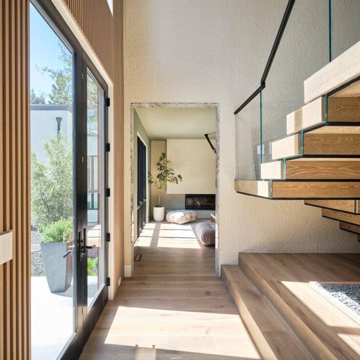 Find your solace with this stunning system. This home frames a beautiful tree feature with FLIGHT Stack, creating a sense of peace as soon as you enter. This project features: