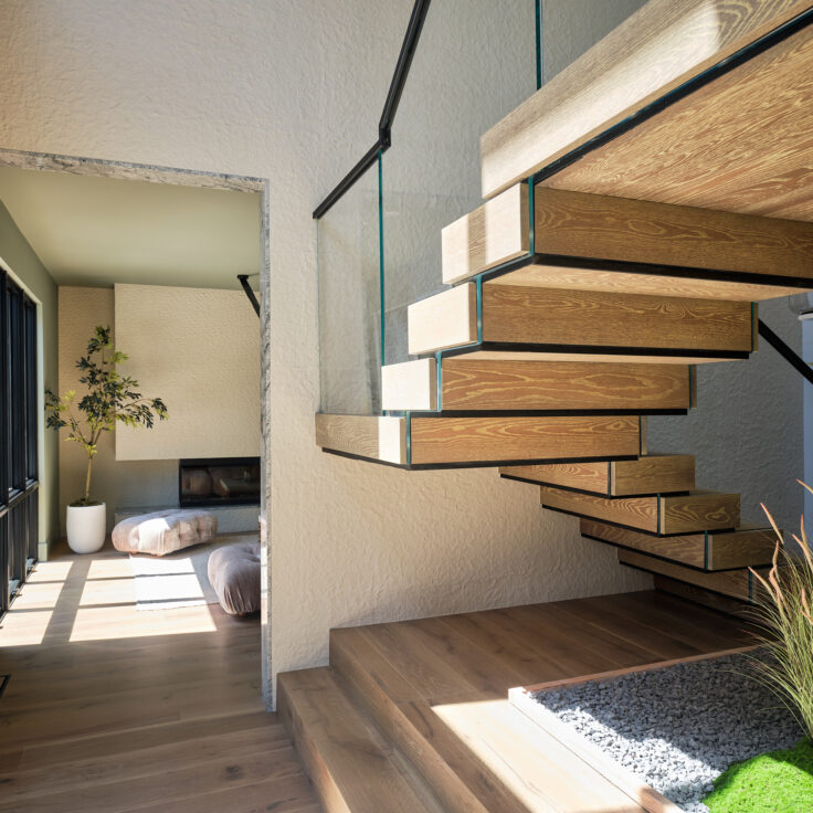 Products: FLIGHT Floating Stairs, FLIGHT Stack, Glass Railing