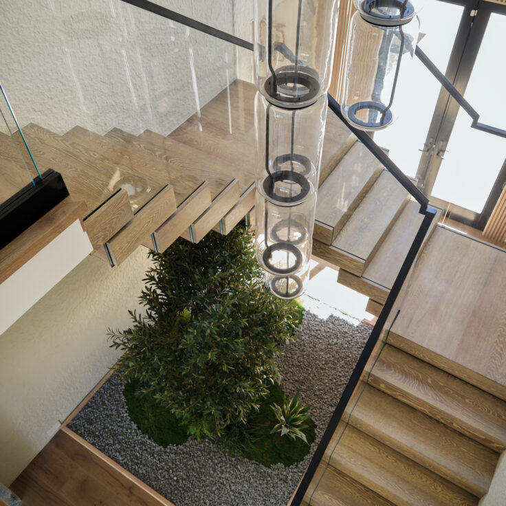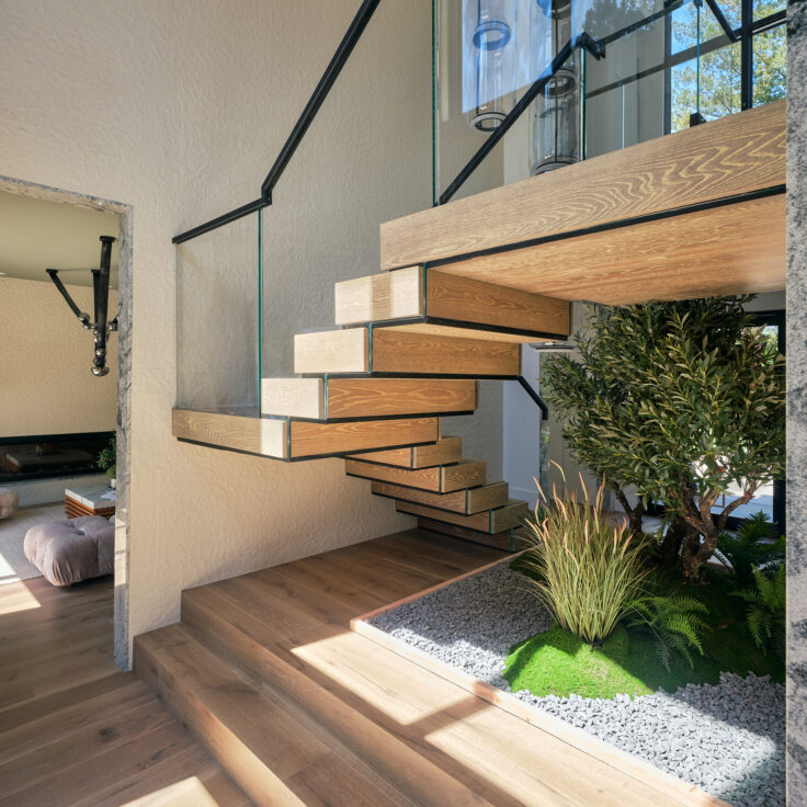 Luxurious and Natural FLIGHT Stack with Glass Railing