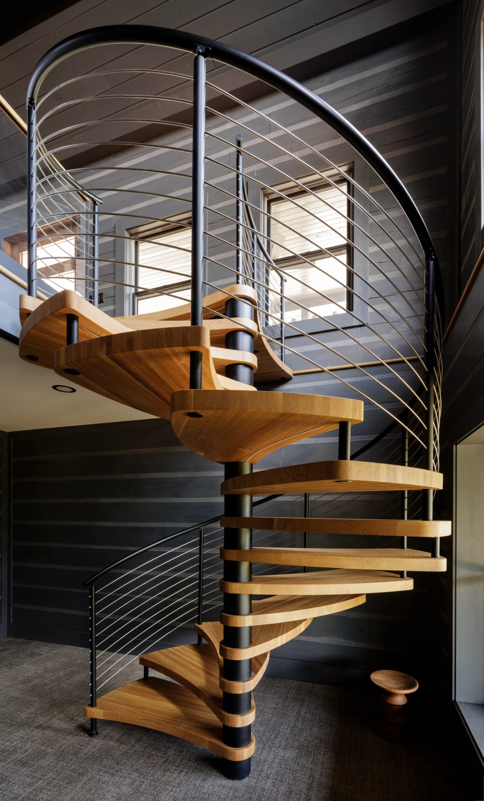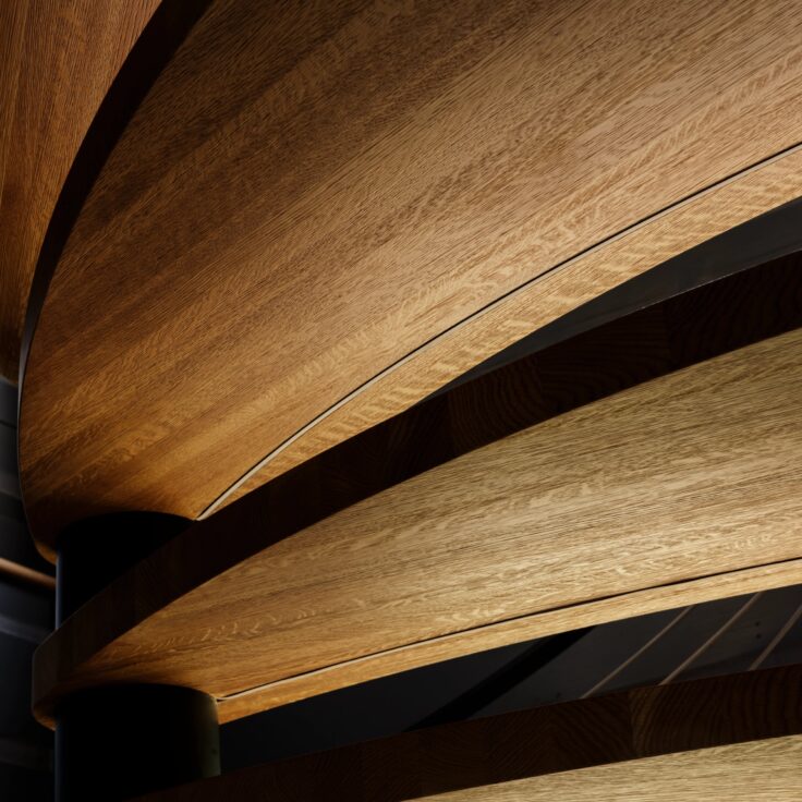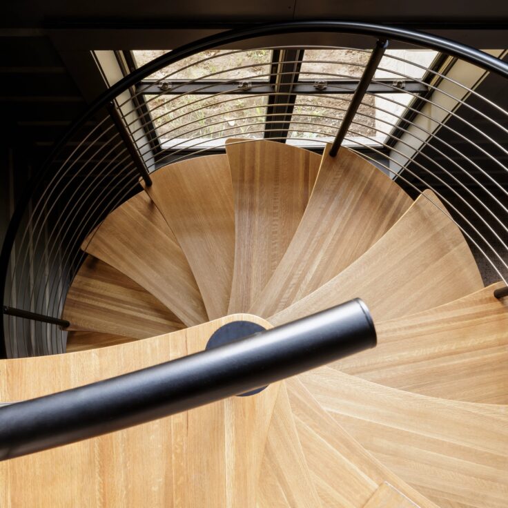 These homeowners couldn’t pass up the opportunity to add some intrigue to their already warm and moody space with FLIGHT Spiral – a modern take on a classic spiral staircase, but with bolder design and materials. Not to mention the LEDs they had integrated into the helical treads.