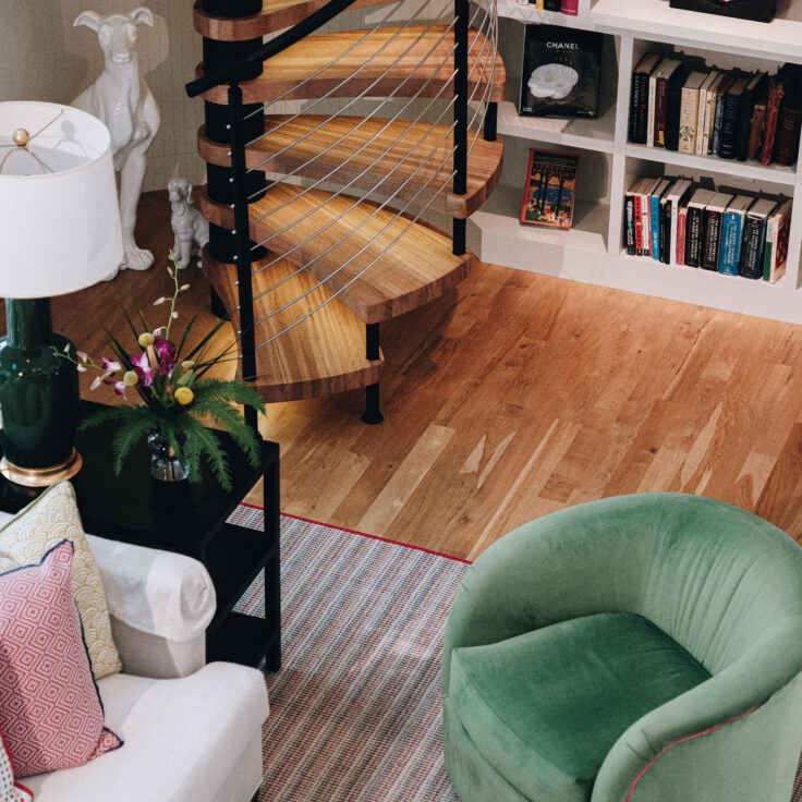 Unique spaces call for thoughtful features. The owners of this home library opted for a gorgeous spiral staircase rather than a traditional ladder to elevate their space and bring an extra element of intrigue to an already spectacular home design.