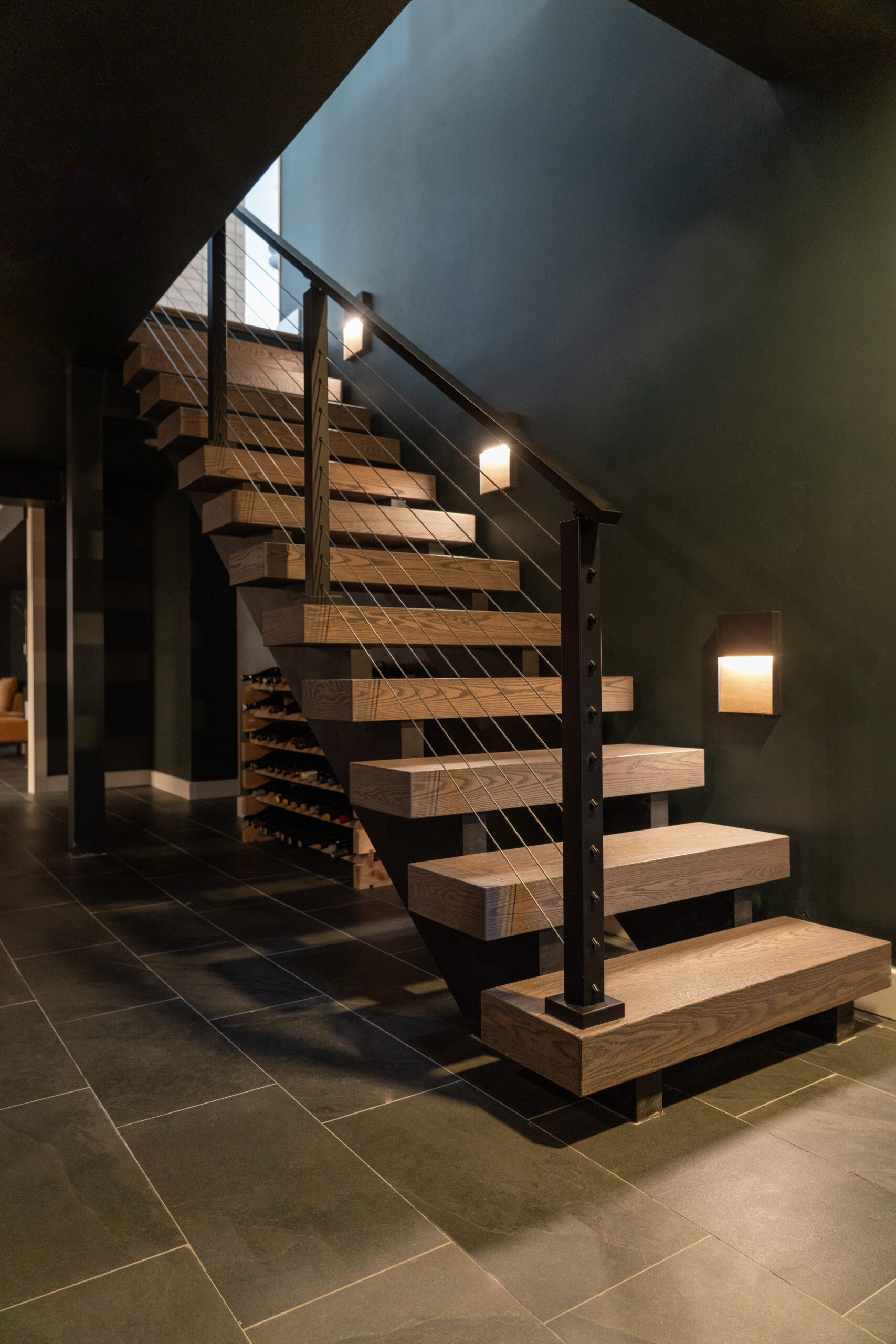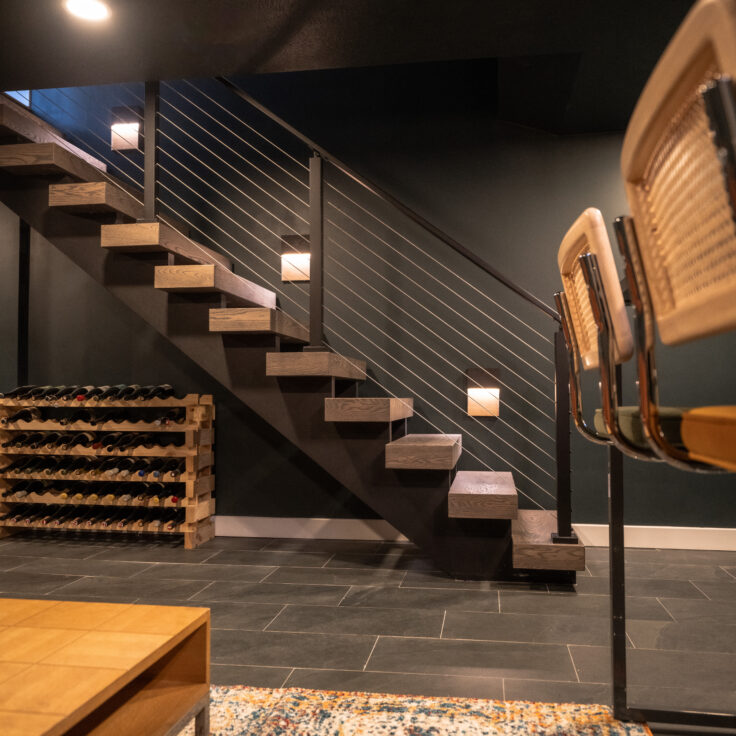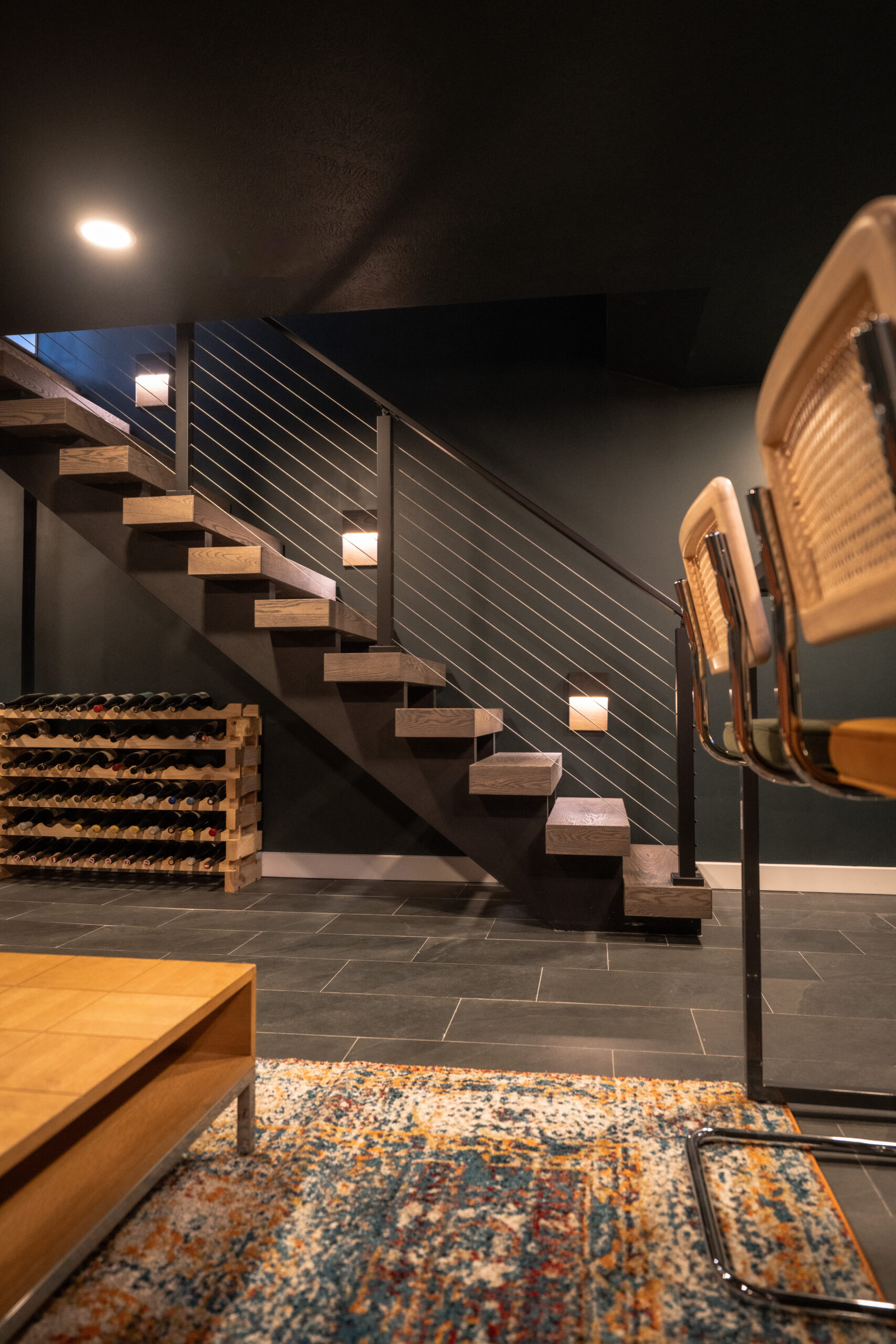 Floating stairs are for every space. This home refreshed their basement with our budget friendly, wooden stringer floating staircase.